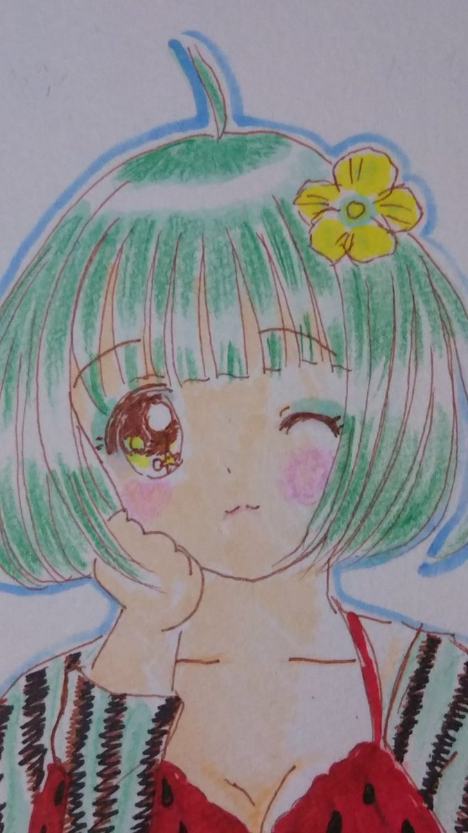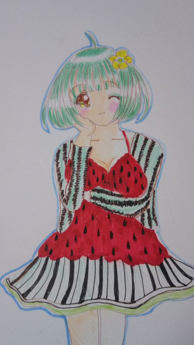 スイカの擬人化 スイカちゃん🍉 #コピック #色鉛筆 #擬人化 #イラスト基地 #可愛いと思ったらいいね