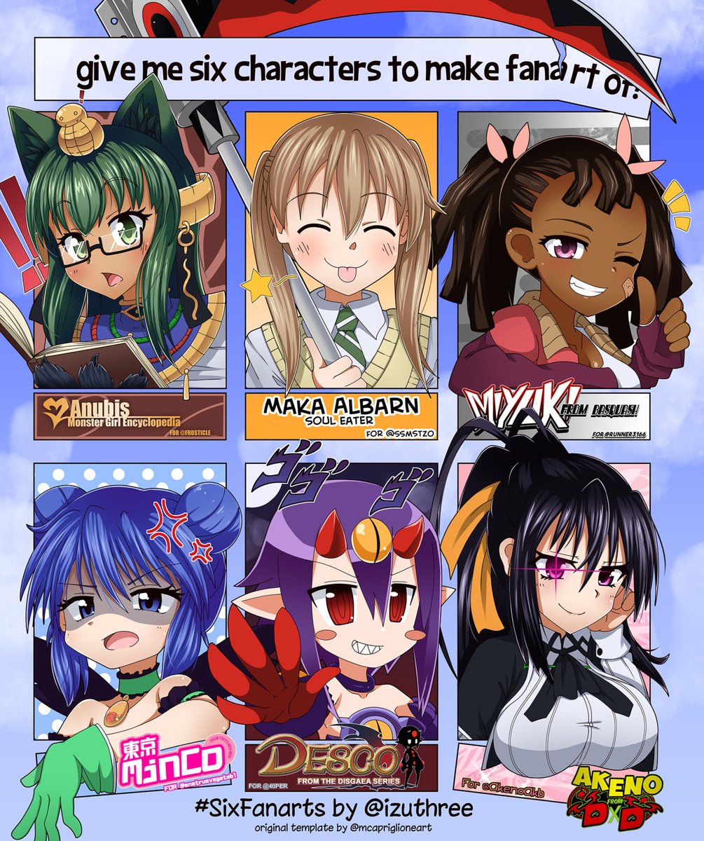 Finished the #SixFanarts I was working on! Thanks to @frosticle__, @SSmstzo, @runner3166, @onetruevegetab1, @40Per and @AkenoAkb for requesting, I had a lot of fun!