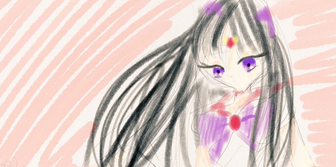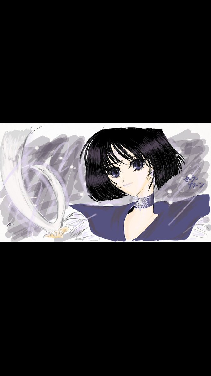 ついにセーラーサターンまできました。画像をここまでもってくるやり方がわからず😅スクリーンショットです。 どなたかパソコンでかいたBamboopaperをTwitterに載せるやり方教えてください💦 #SailorMoon #セーラーサターン #セラムンイラスト部