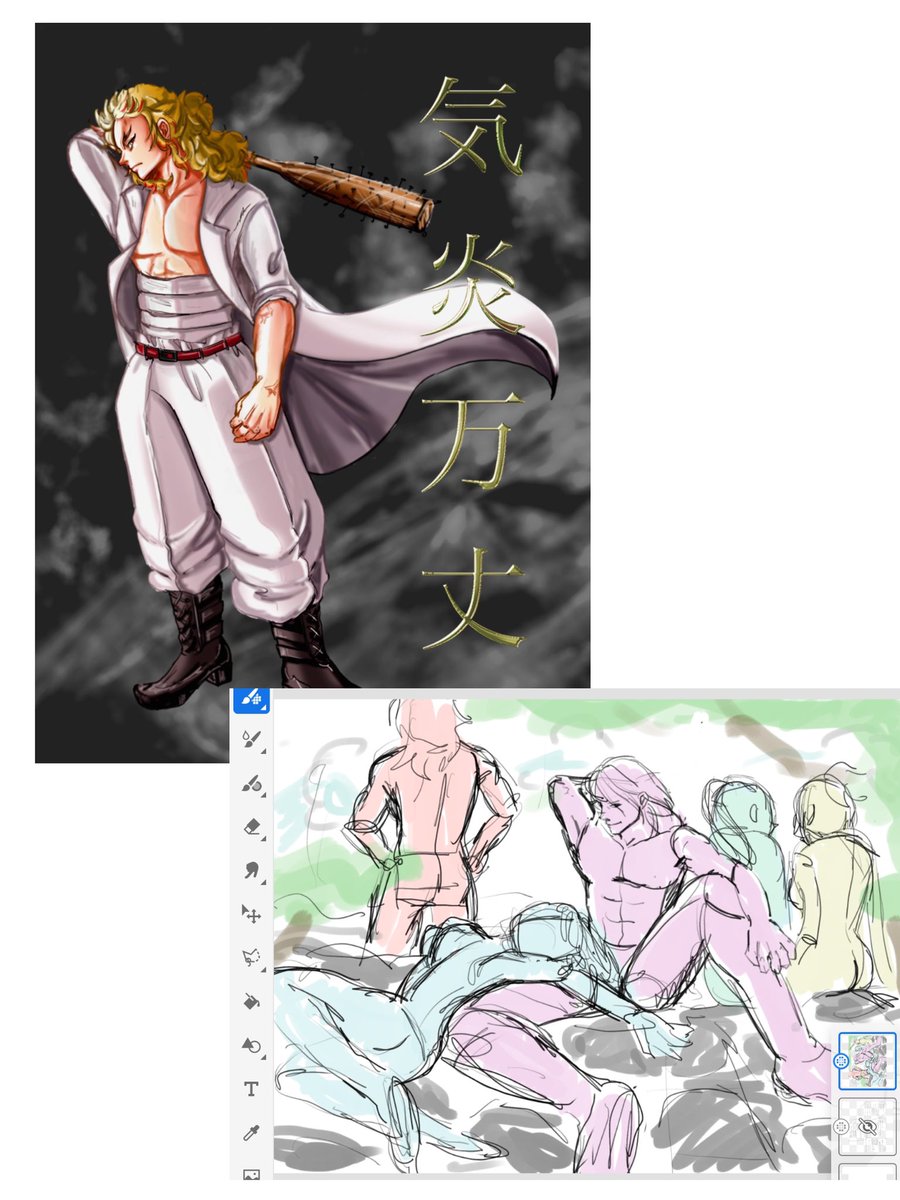 2期放ii映前に🔥さんが出ないことに悲しくなり、 どこかで一緒に観ててほしいな…と 一年前に描いた絵を今回描き直ししてます。 ユシロウさんの札があったら、シ後の世界でも観れるのでは?という 思い付きで描いてます。 ツリーに過去絵と過程貼ってます。