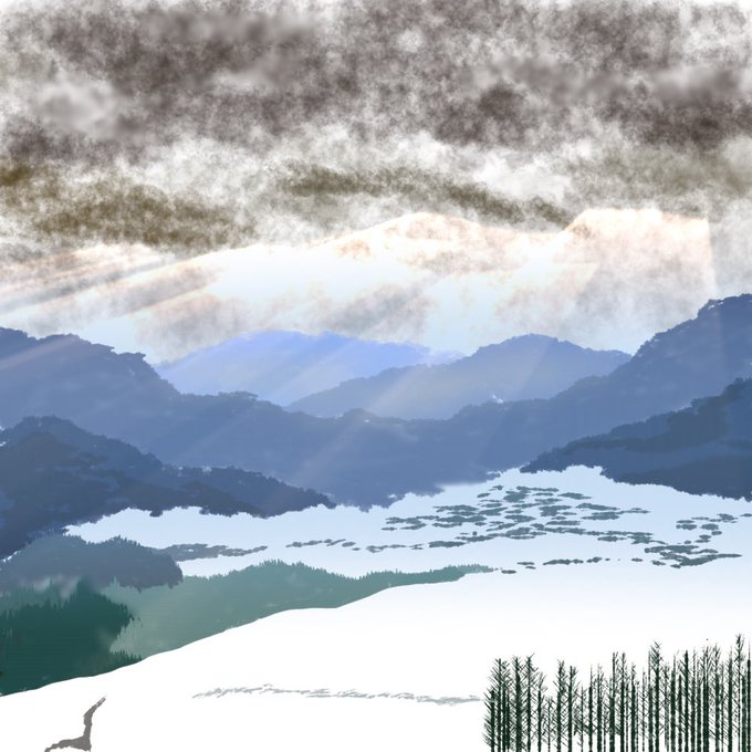 0 7 雪景色 もっと細かいところ描ける気がする🤔 #アイビスペイント #冬 #雪景色 #風景画 21/12/11 10:00