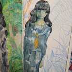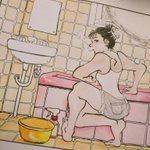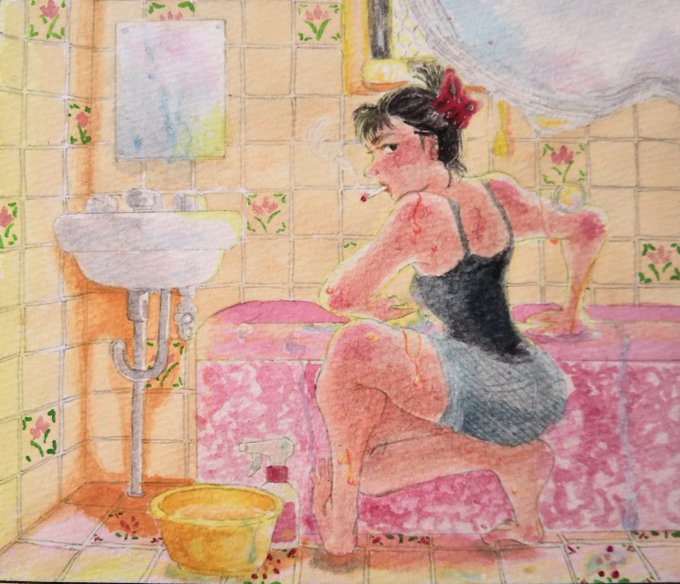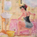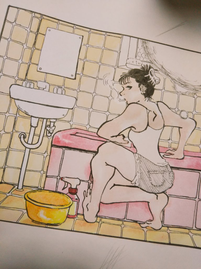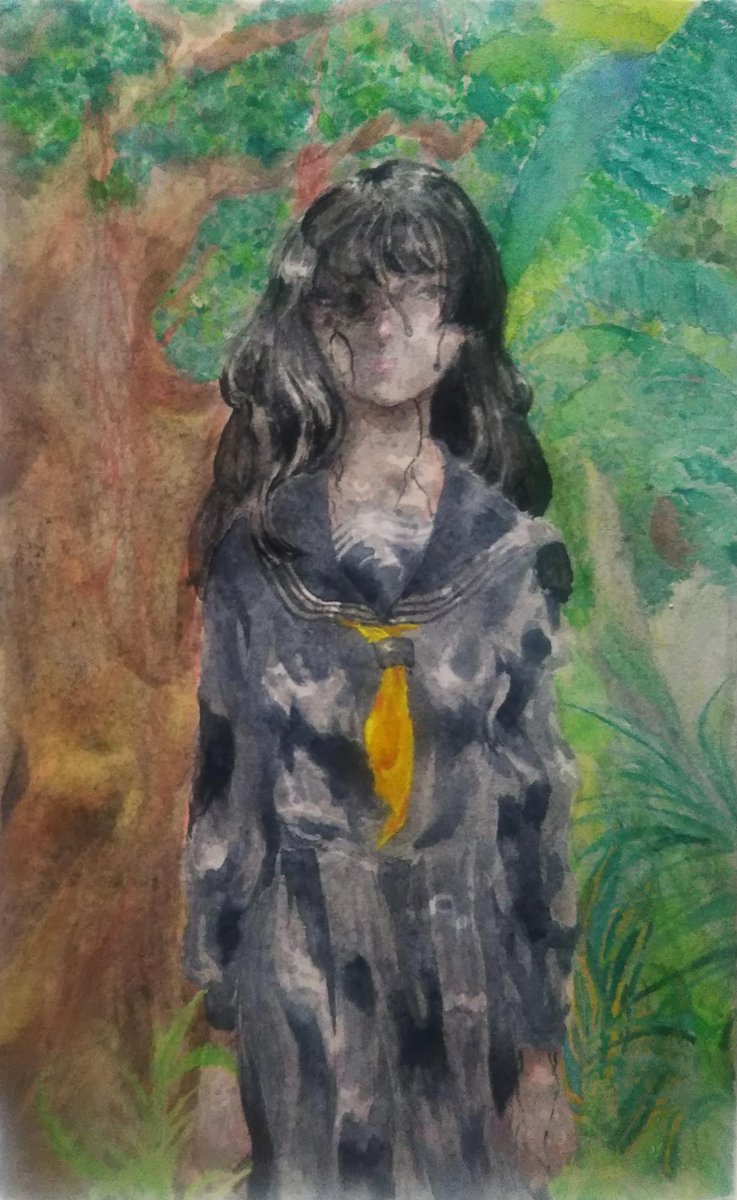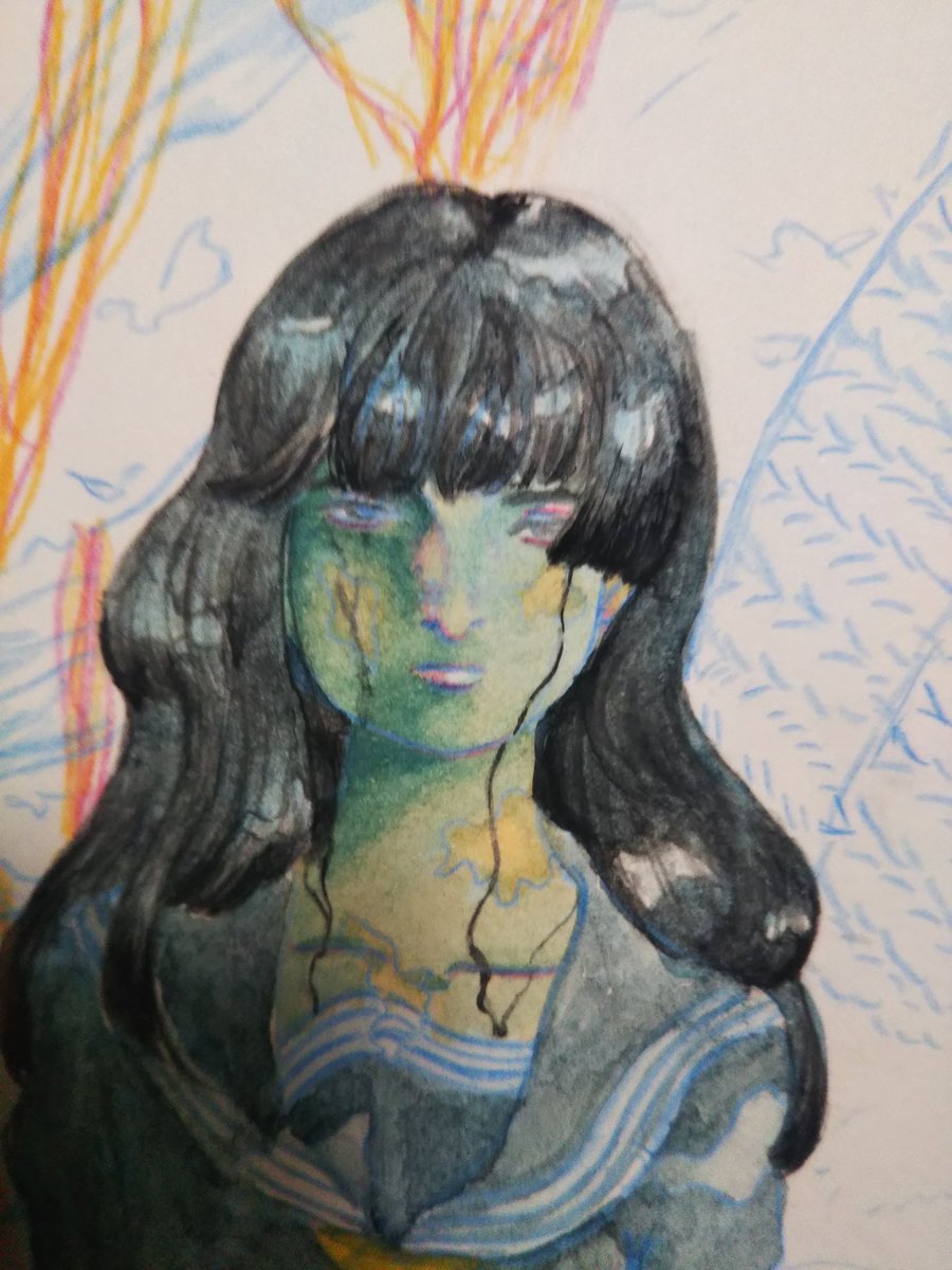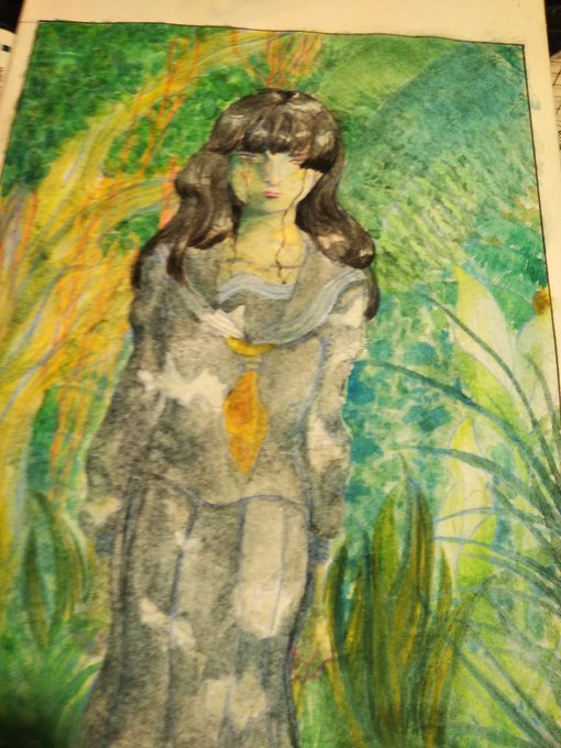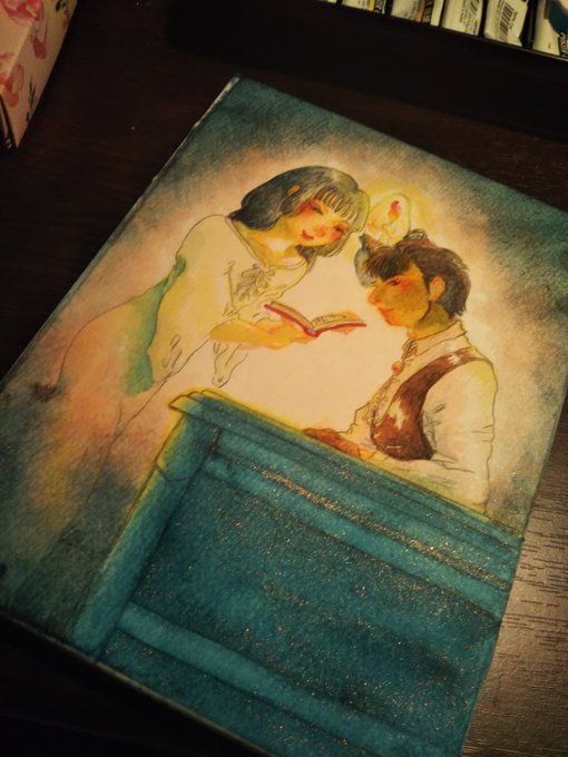 #進捗 #水彩 #絵描きさんと繋がたい 今ちょっと思いついて衝動的に描いてる絵🎨🖌 こっそり描いてる漫画の子たちです 影になる部分に金のパール絵の具を塗ったのでパールがチラチラしてとても綺麗…✨