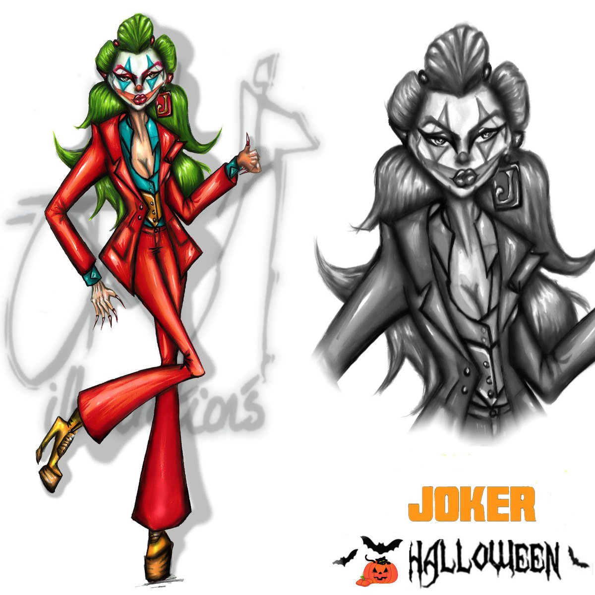 Halloween Ideas. The Joker.🤡 I always like to re-imagine leading horror villains, as the opposite gender and in this case,… feminise their costume! #drawing #art #fashionillustration #fashionsketch #clown #joker #jokercostume #jokerfilm #thejoker #halloween #inktober #greenhair