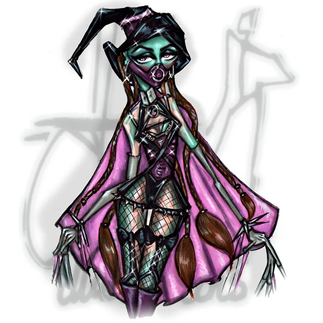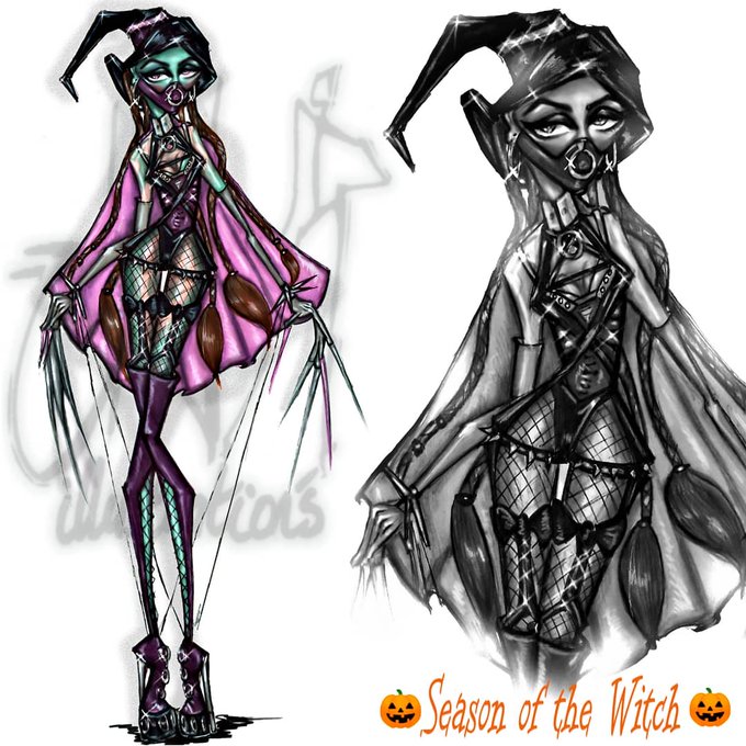 Season of the Witch. 'Barbers Bondagio of Strings'🎃👻 #halloween #halloweencostume #halloweenideas #witch #witchideas #witchfashion #thewitches #seasonofthewitch #october #inktober #artist #halloweenart #dragart #dragqueen #dragrace #fashionart #fashionillustration