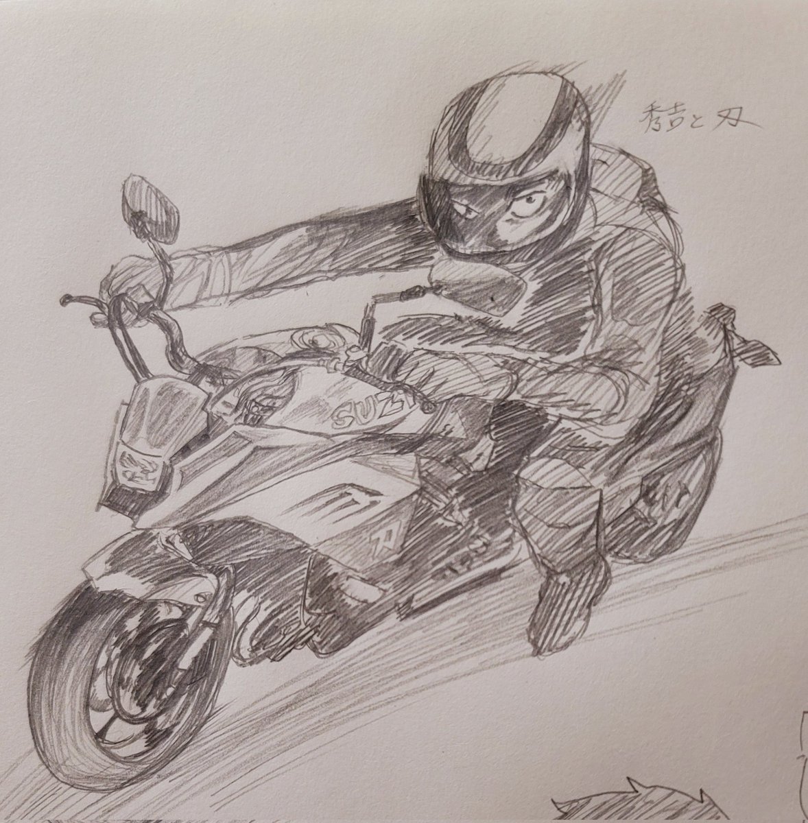 2 14 #イラスト #バイク 久しぶりにバイクを描いてみた✍️🏍 スズキ大好きなんよなー🤔✨(そんなに詳しい訳では無いけれど)バリ伝の秀吉に乗せてみた😭カキタクナッチャッタカラ。 22/02/10 00:03