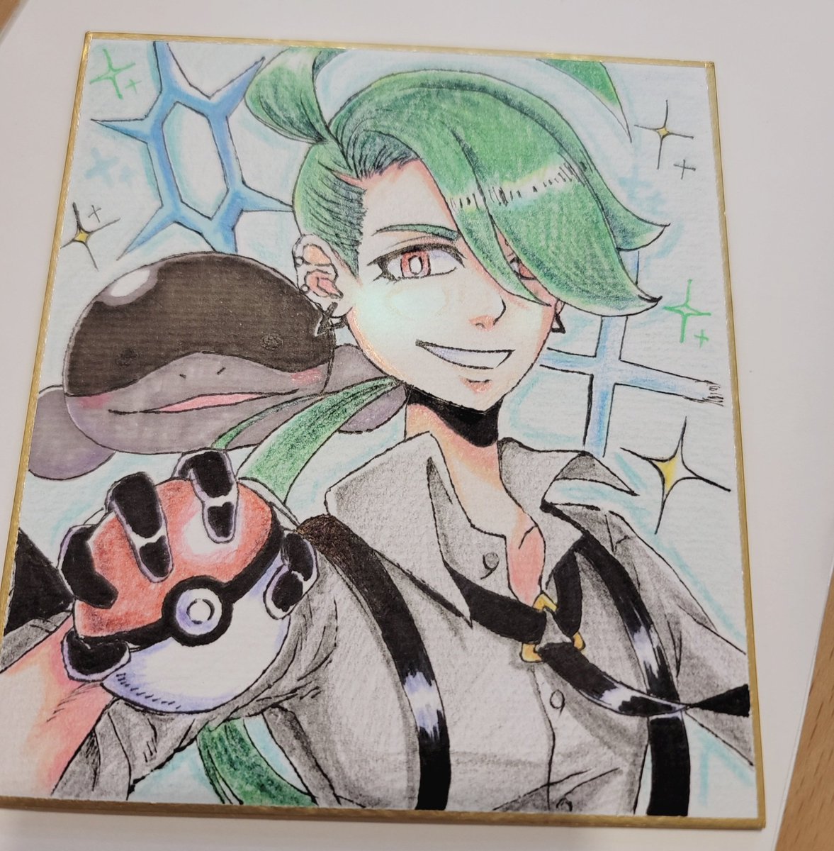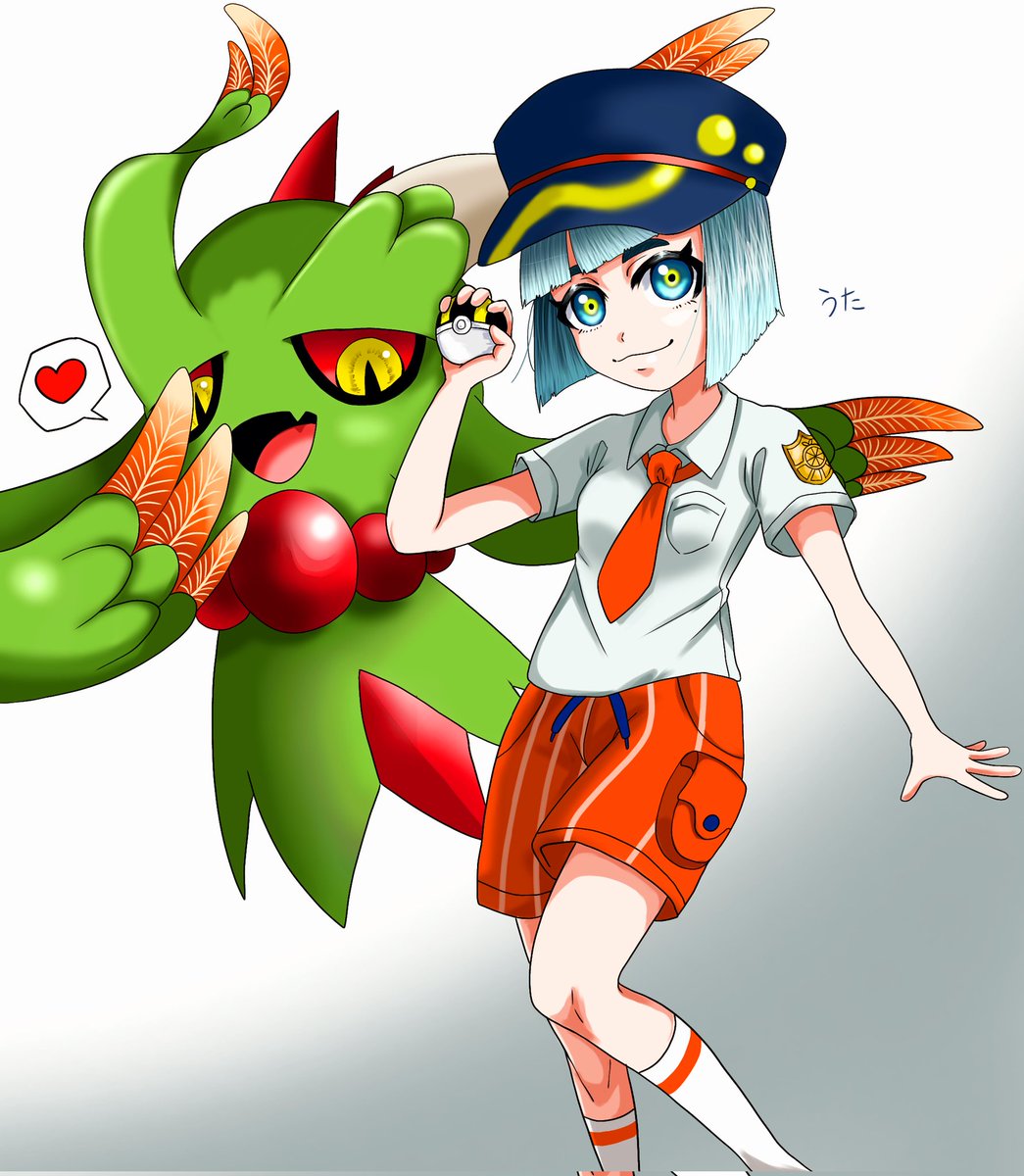 #ポケモンSV 自分(主人公)を描いてみた✍️✨ 案外可愛い…❓ 相棒は色違いハバタクカミの 『カミサマ』ちゃん😂😂