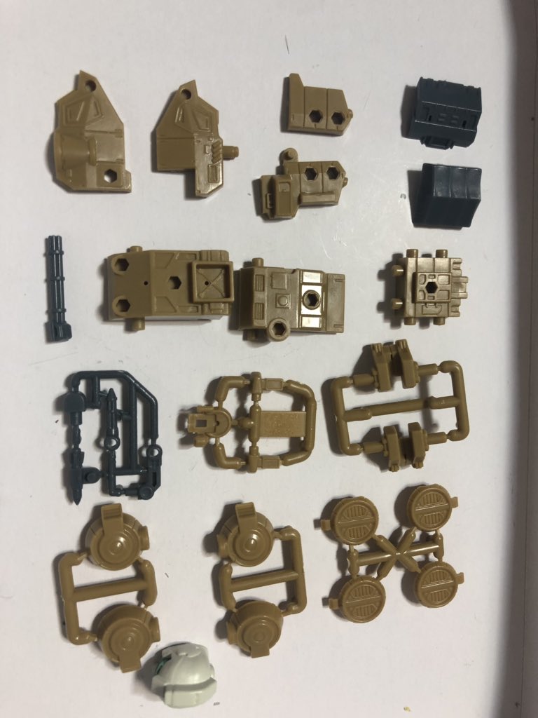 #モビルスーツアンサンブル 09、ホバートラックがオールプラパーツな上、3mmピン&孔だらけなのでオリジナルアセンブルする際にコアパーツや装甲に使うのに良さそうな部品多くて、とても可能性を感じる。
