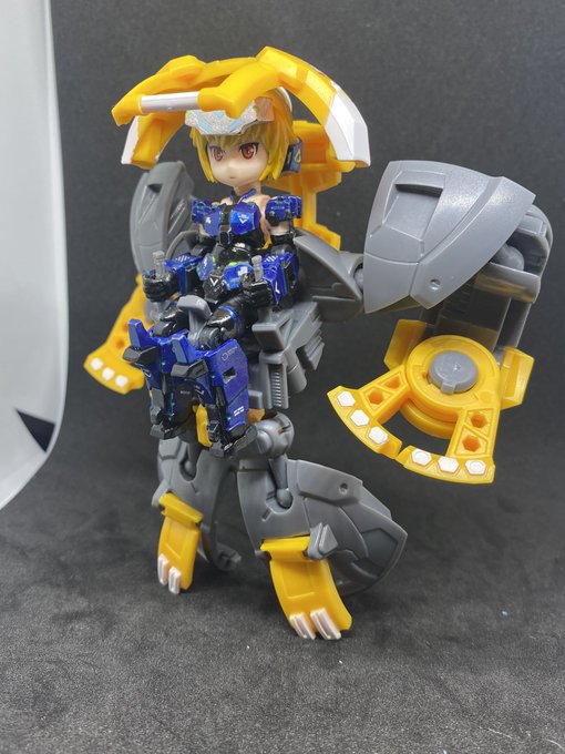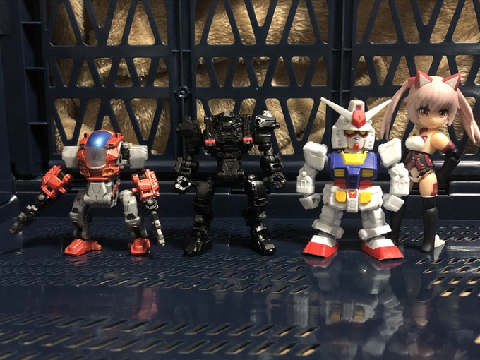 #カプセロイド に他のフィギュアは乗せられるか、ということで。 #デスクトップアーミー は汎用型のボディスーツ素体なら支障なく乗せられる模様。大腿が太いものは股座のシートパーツを外せば◯、スカートパーツなどがあるものは外さないと乗れないので、相性×。