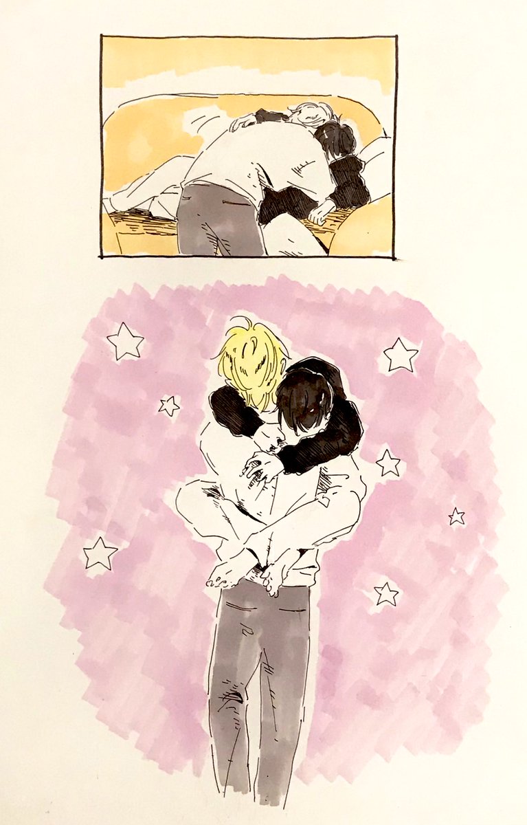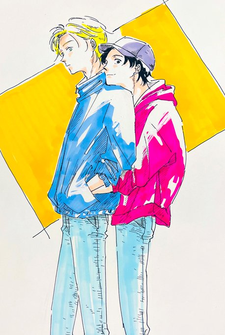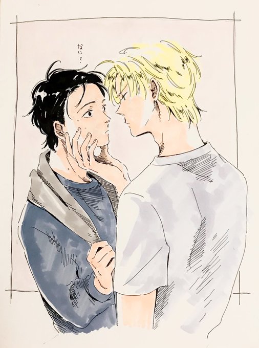「英ちゃんの顔を掴んでじっと見るアッシュが描きたい」という気持ちだけで仕上げたやつ。 #BANANAFISH #バナナフィッシュ