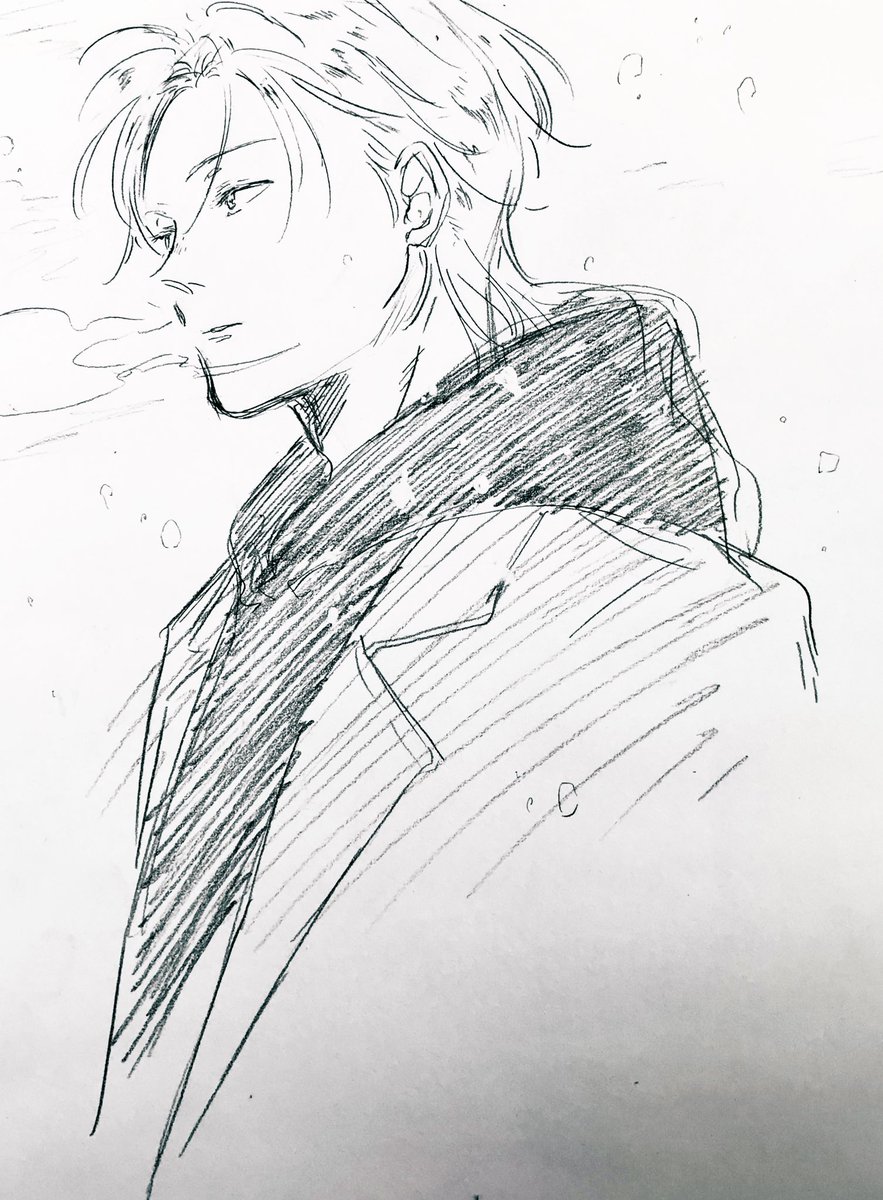 柔い表情のアッシュ久しぶりに描いた。すてき。 #BANANAFISH #バナナフィッシュ