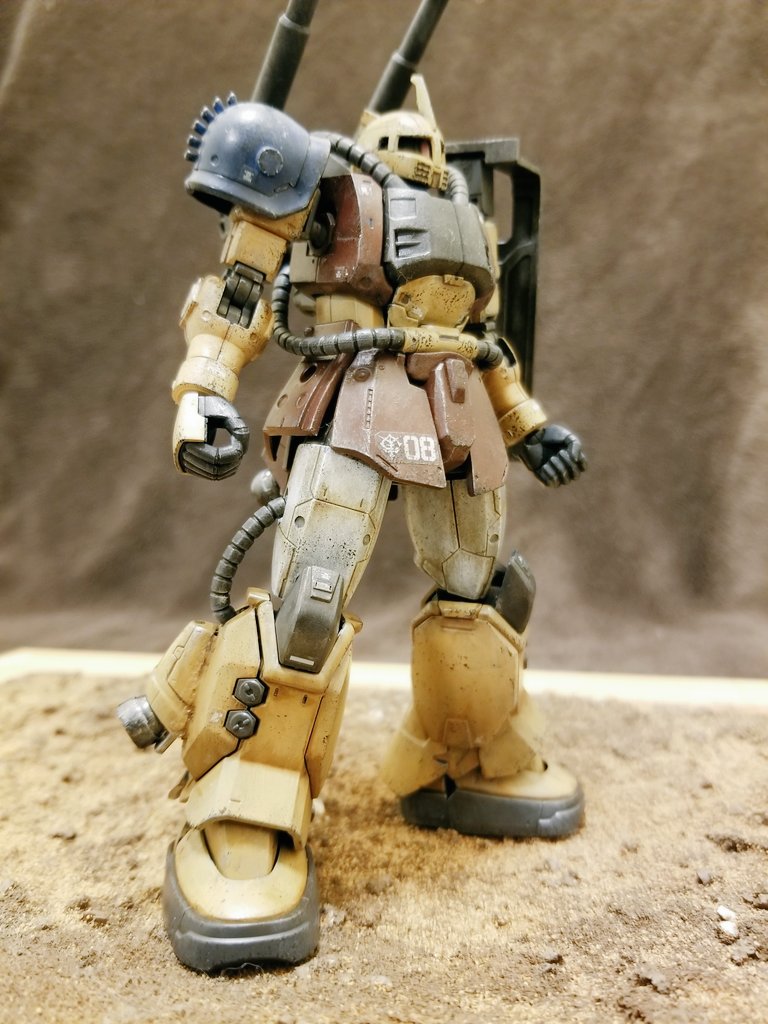 #今日の模活 #ザクデザートタイプ 完成☆ #筆塗り #ガンプラ好きな人と繋がりたい 息子の旅立ちの日に完成☆といっても何の関係性もありませんが(笑)僕の記憶には残るだろうなぁ。 くんしさんのコンペの方はまだ時間あるので、ジオラマベースも出来たら投稿します。ひとまず本体完成記念☆
