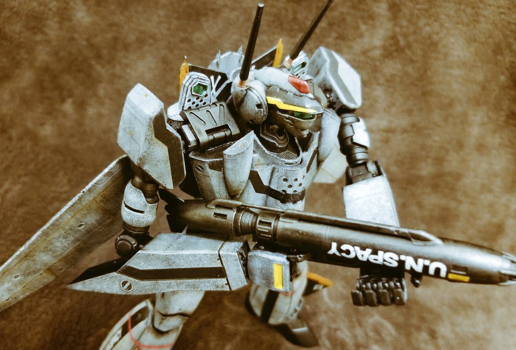#今月作ったプラモ晒そうぜ 2月は1体だけ。 旧キット1/72ブルグレン。レイズナー大好きです(*´∀`*) これ高校当時に作ったことあって、当時も腰アーマー分割して、切った輪ゴムを瞬接で留めてたっけ。当時からアクリルの筆塗り。懐かしいやら楽しいやら。旧キットの楽しさに目覚めそう(笑) #筆塗り