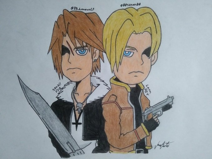 A simple but fair drawing. Dedicated to @00sakon00 with his art style. --- #traditionalart #pencilart #Inktober #artcolor #fanart #drawing #ResidentEvil4 #FFVIII #SquallLeonhart #LeonKennedy