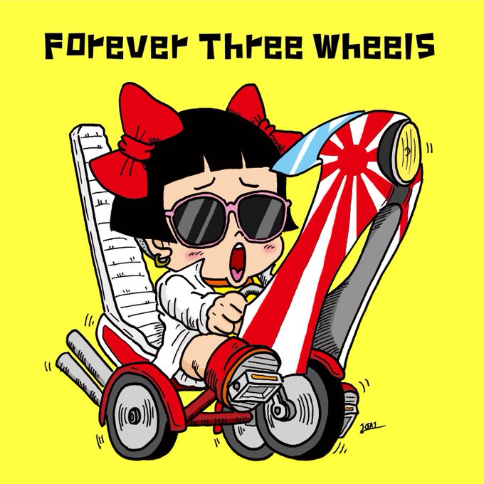 ナウい三輪車♪ ロケットカウル仕様で(゚∀゚) カラーリングは、、武丸さんとお揃い。 一応マフラーもつけときましたw #イラスト
