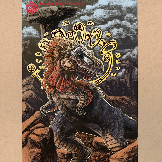 I drew inspiration for the trex coloring from another big, badass predator—the lammergeier, or bearded vulture. Those birds are so BADASS, the exist on a diet of bones #tarot #dinosaur #illustration #paintingdragonfeathers #scratchboard #tyrannosaurusrex #trex #paleoart #fossil
