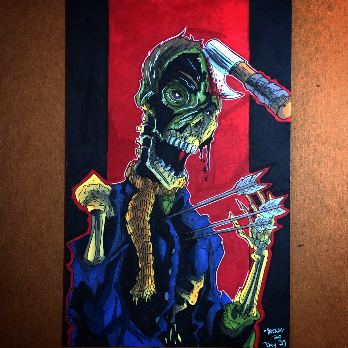 Finished in a blackout by candlelight 🤦🏻♂️ running behind. #day24 #inktober #inktober2020 #ashvsevildead #ashleyjwilliams #evildead #pinup #deadites #horror #markers #studio