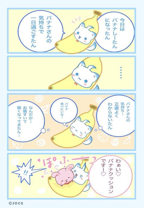 しーたん🦊「こんばんわんo(*º▽º*)o 今日は #バナナの日 だよ🍌 しーたんはね、バナナの皮踏んでコケたから眠くなってきたよ(。´-д-)。o○Zzz 今日もお疲れ様でしたん(*_ _)♡」 #企業公式がお疲れ様を言い合う #漫画が読めるハッシュタグ