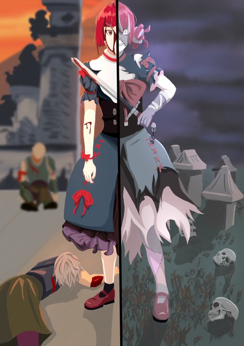 A sketch I quickly made because it was my cake day in Reddit. Title: Ollie and Astel going apex. #graveyART #Kureiji_Ollie #holostars #astelleda #アステル絵ダ #fanart
