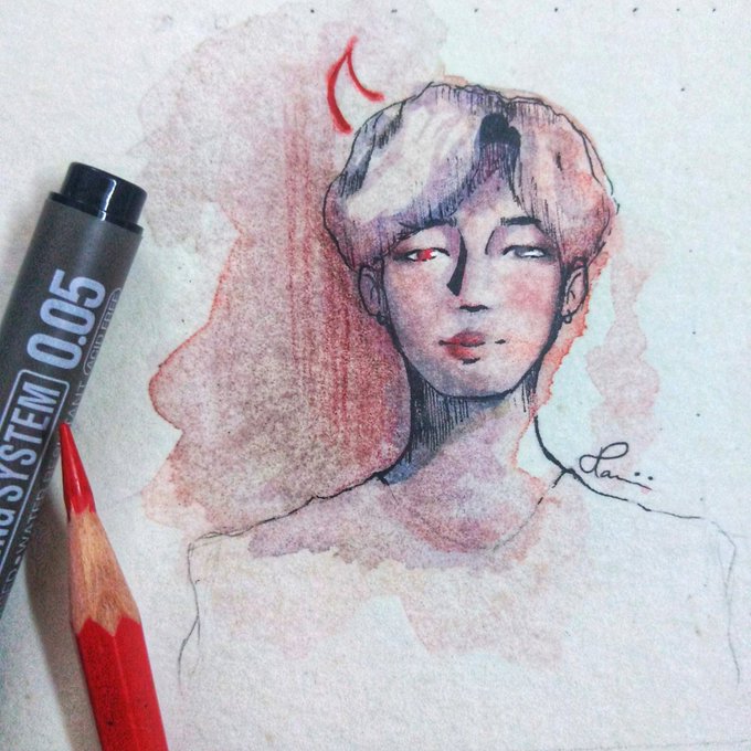 Vampire Jimin today💖 Lemme be sad about how I ruined my brand new paper and how no one's gonna see this anyway😔✊ #btsfanart #FANART #BTS_Dynamite #BTS #jiminfanart