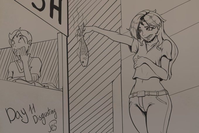 We going next, again a bit late Day 11 - Disgusting Still have some problems but looks fine ^_^ seems not a good day for fish today xD #inktober #inktober2020 #inktober2020day11