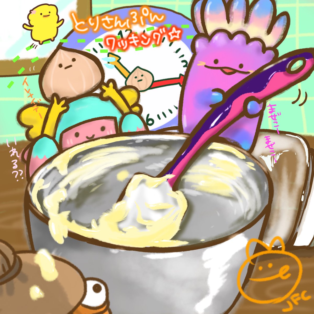 🐥とりさんぷんクッキング⏰🍳が、可愛すぎて(@ ̄ρ ̄@)❣️❣️ 妄想ふくらみ…🎨🤤💭お絵描き🙌 このヘラ✨本当に可愛い😆‼️ お料理上手なとりさん🐥素敵🧡 @GdCQ7byaoKK7fpD #フォートナイトイラスト