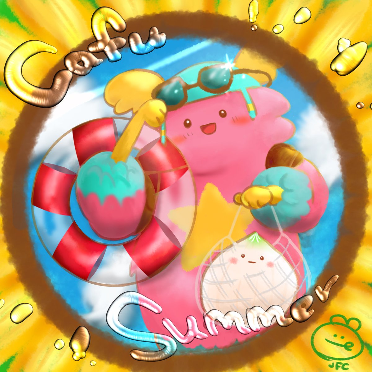 フォトナ美術部✨ 今月のお題🎨ガフ✨ まだ5月だけど😂夏感全開のガフ&新タマネギさん🧅いざ海🏖へ🌊なイラストに仕上げました〜🤤🙌 #フォトナ美術部 #FortniteArt #ゆるいイラスト