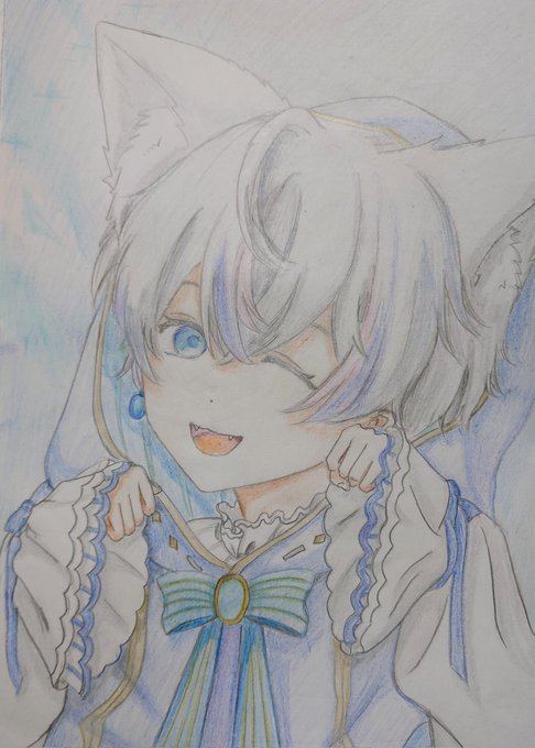 アナログイラスト、最近お気に入りの色鉛筆塗りで塗ってみました✨デジタルもいいけど…色鉛筆の自分で塗ってる感も好き(*´ω`*) #シクフォニ #シクスフォト #こさめの目 twitter.com/JGOz733jFva4Tu…