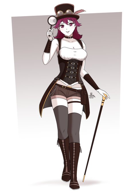 Buenos días a todos. DÍA 08: Steampunk. TEMÁTICA: OC SFW #biciotober2021 #biciotober #inktober2021 #steampunk #steampunkanime #steampunkart