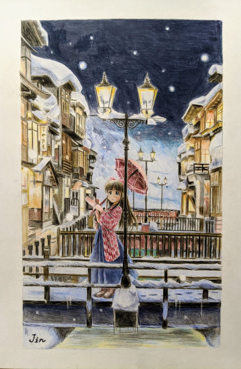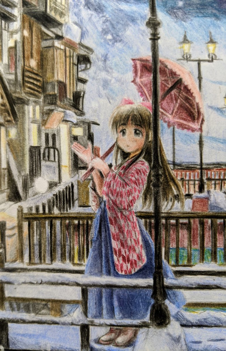 『ミルキーウェイ・イルミネーション』 過去作ですけど、トレンドタグを見て思い出したので。 青系の色鉛筆ばっかり使ったなぁ。 (ちなみに衣装が冬の星座になっていたり) #あなたのあお色の作品を見せてください