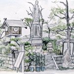 【過去のスケッチと現在の比較】 第55番札所 南光坊 『境内中央の石碑と分断する道路』 何を意味する石碑から分かりませんが、南光坊のランドマーク的存在だなぁ…という理由で中央に描きました。後は境内を2つに分断する道路が描きたかったと思われます。 #四国八十八箇所巡り