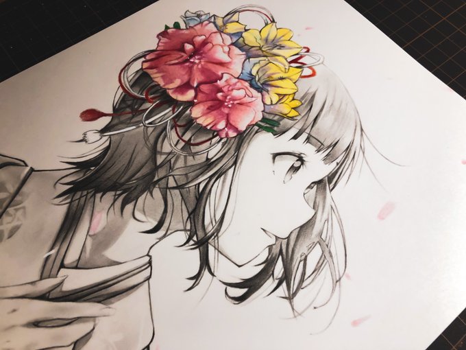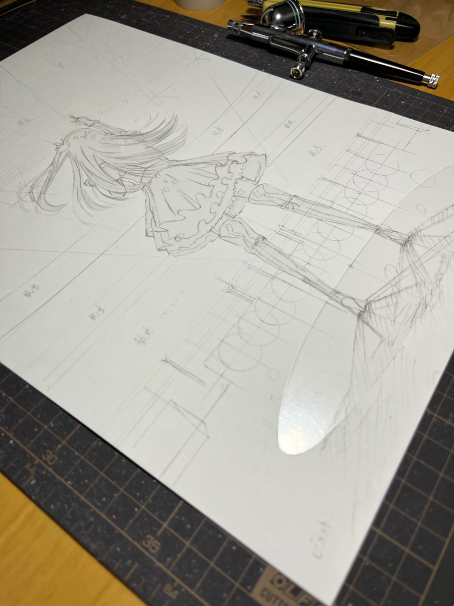 #作った本人も作り方説明するのむずかしい作品 なんかエアブラシで背景バーってやって色鉛筆でオリャァァァ!!塗ってホワイトでペッペッってすればできます