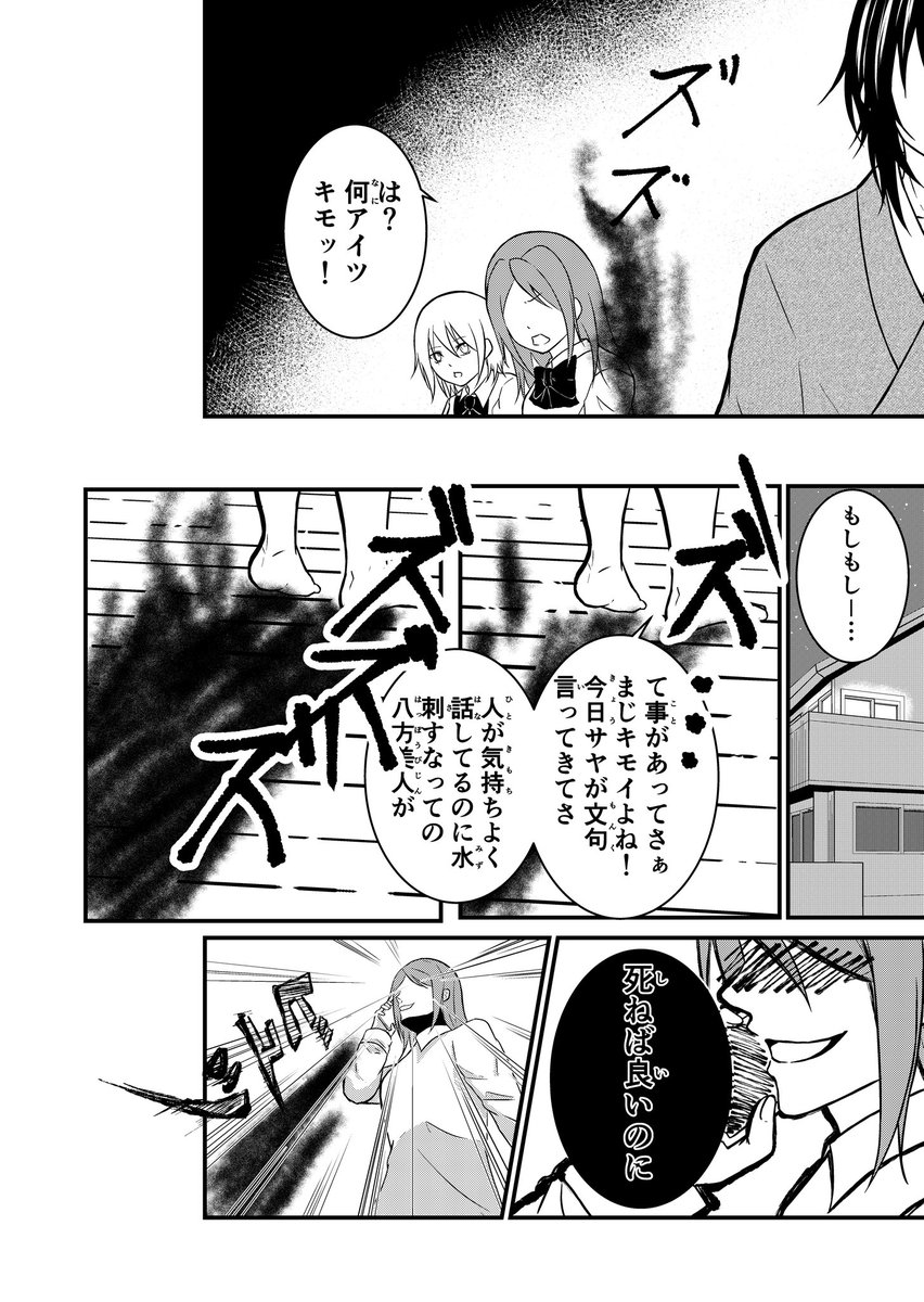 最終課題で描いた4ページ漫画✑ (⚠右から1ページですが左ページ始まりで描いてます!) 言葉は言霊となり力が宿ると言 われています。 皆さんも言葉の使い道にはお気をつけて…。 #漫画が読めるハッシュタグ #漫画家志望