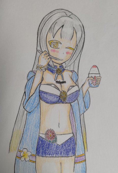 もうすぐ夏になる だから水着姿で菊を描きました... 夏天要到了 所以畫了穿著泳裝的菊…… #天華百剣お絵描き部 #天華百剣