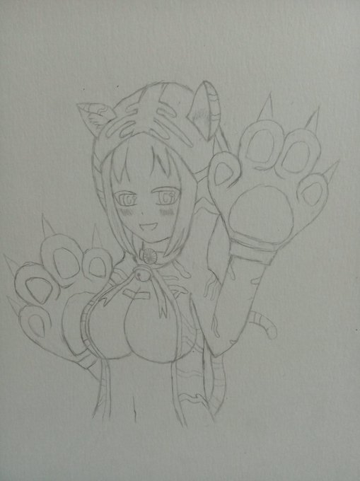 我知道新年快到了…但是我最近懶癌發作XD 所以在這邊先獻上「因為暖暖桌而變懶的菊」(之後大概會上色) #天華百剣 #天華百剣お絵かき部