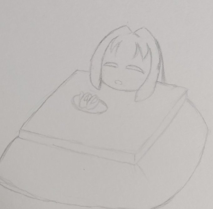 5 9 我知道新年快到了…但是我最近懶癌發作XD 所以在這邊先獻上「因為暖暖桌而變懶的菊」(之後大概會上色) #天華百剣 #天華百剣お絵かき部 23/01/13 00:28