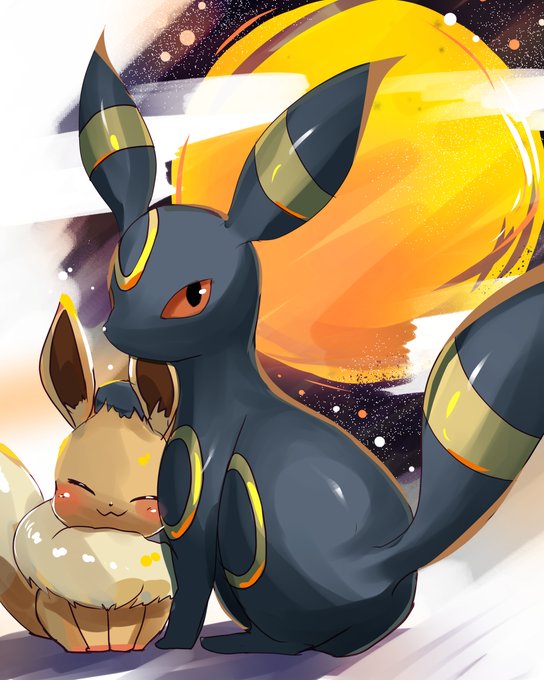 #ワンドロ で #Pokémon の #ブラッキー と #イーブイ を描きました! #illust #illustrator #イラスト
