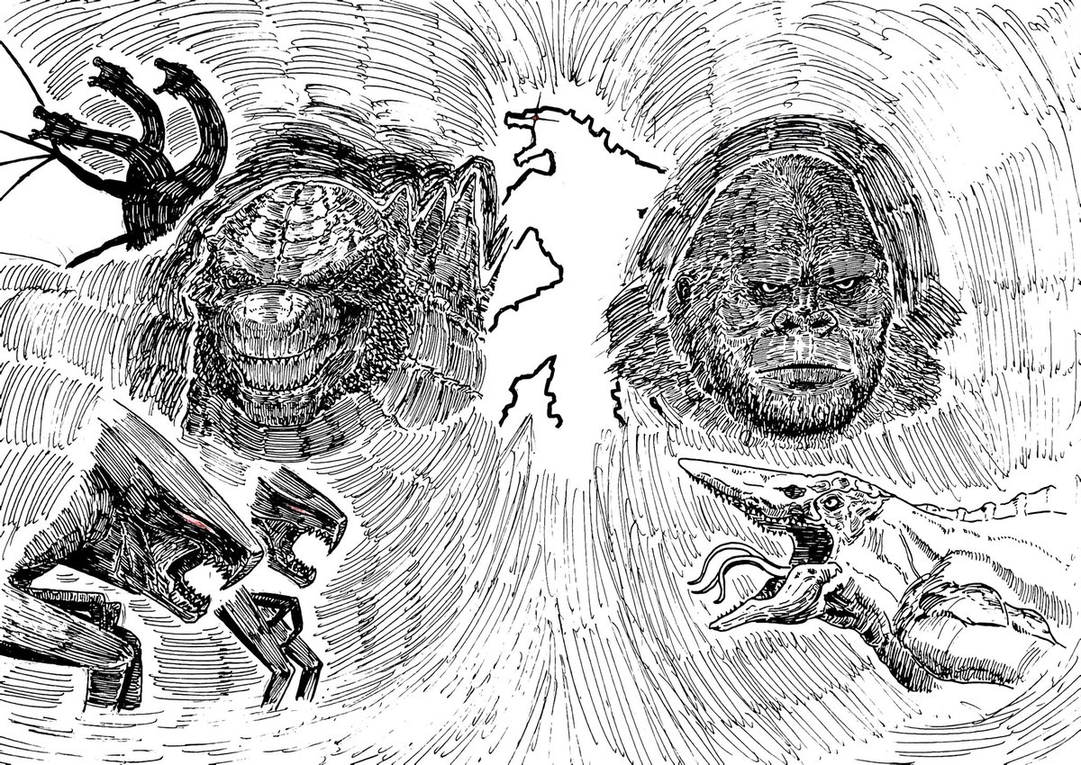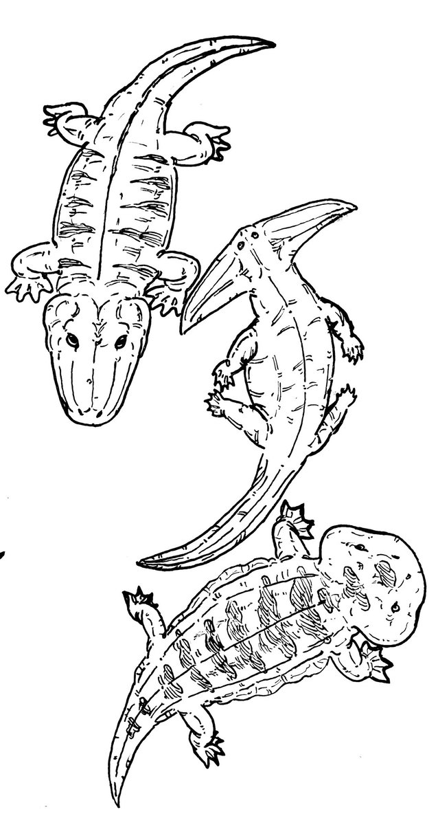 Three extinct large amphibian predators Rhinesuchus Diplocaulus Koolasuchus #paleoart