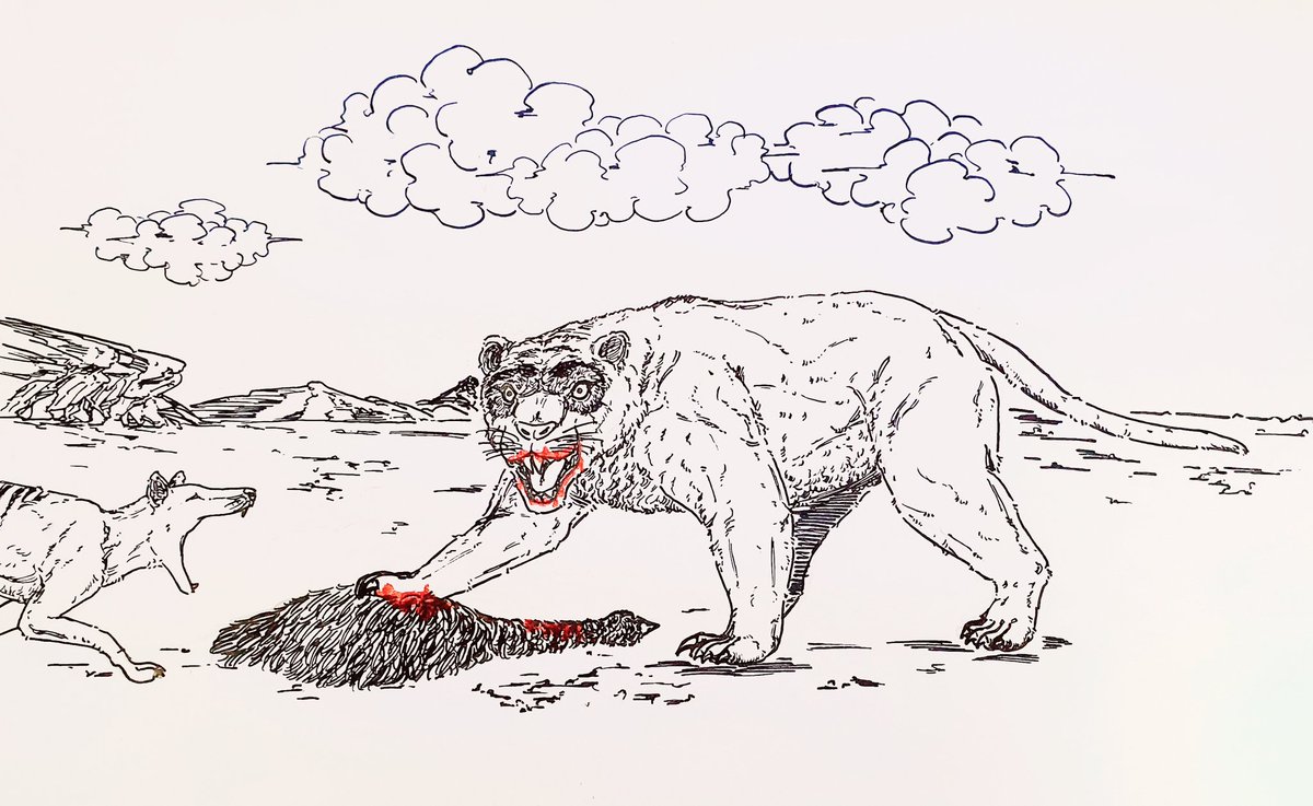 6 19 Thylacoleo fights Thylacine not to lose the dead young emu he hunted Australia, Late Pleistocene #paleoart 22/09/28 21:21