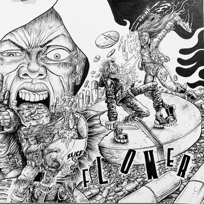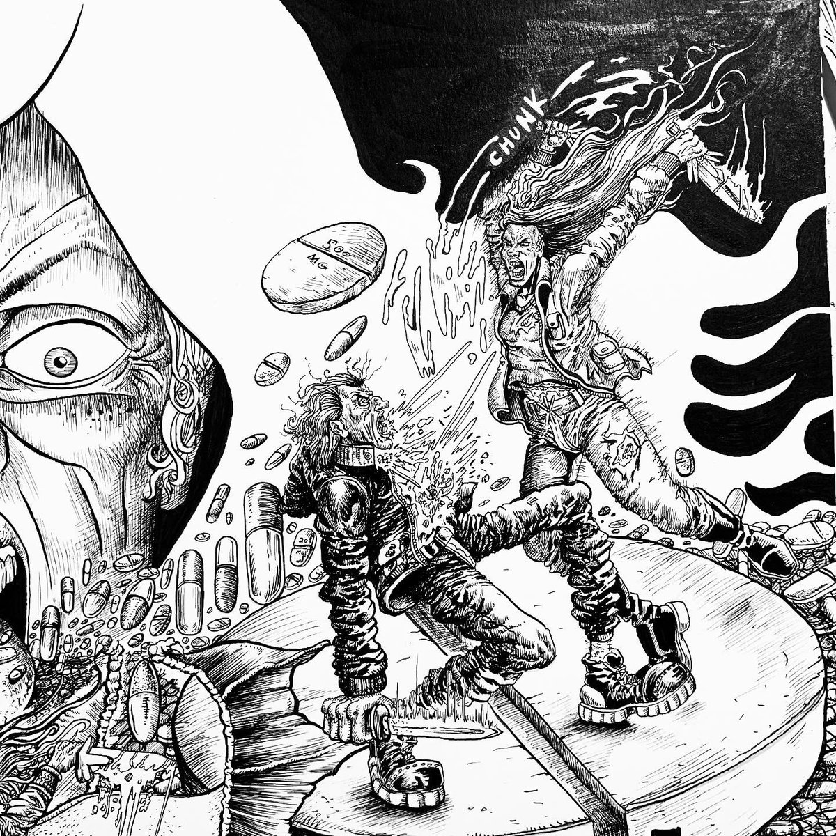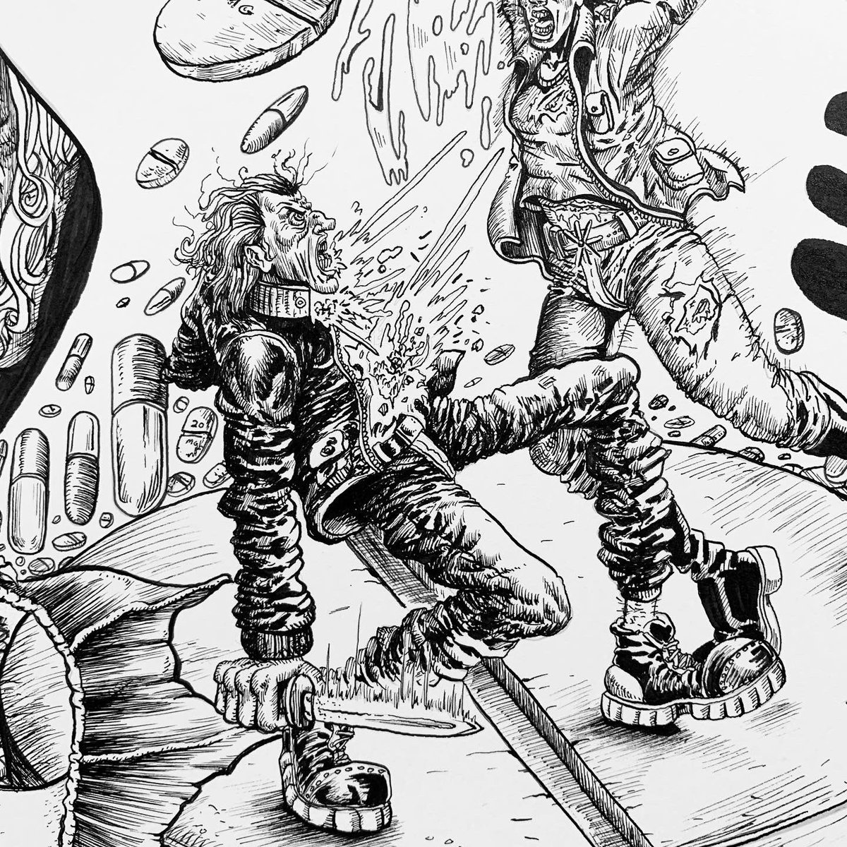 Right side done. Onto the left. About a thousand more pills to go. #art #crimsonflower #darkhorsecomics #comicart #comicartist #openforcommissions #comics #drawing #ink #inktober2021 #figuredrawing #blackandwhite