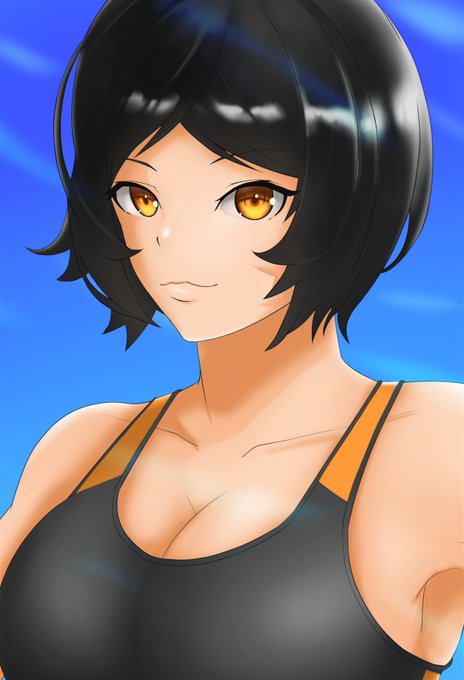 うちの娘(前髪おろし)描いた 暑い季節は水着ですね、、 #イラスト #お絵描き