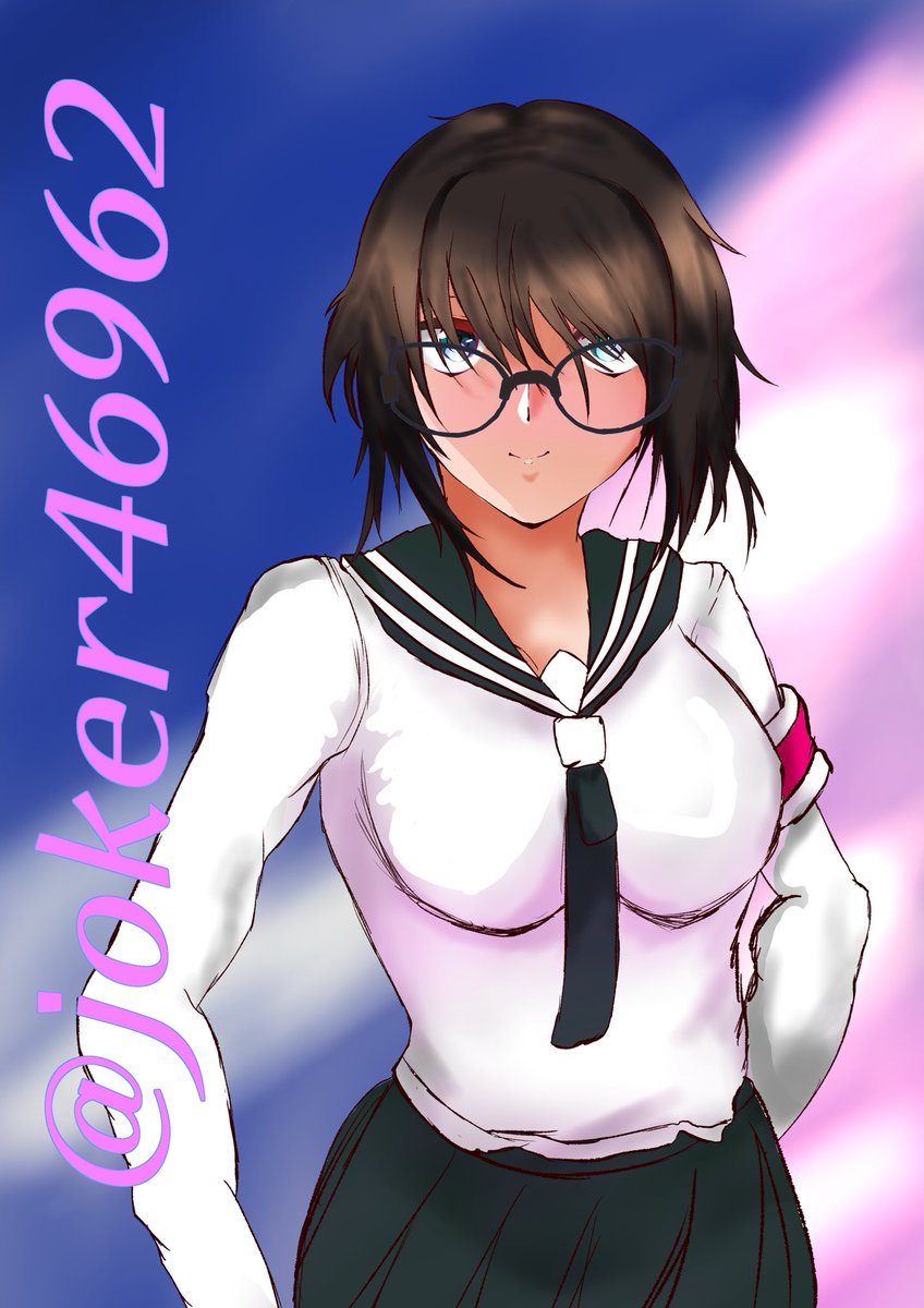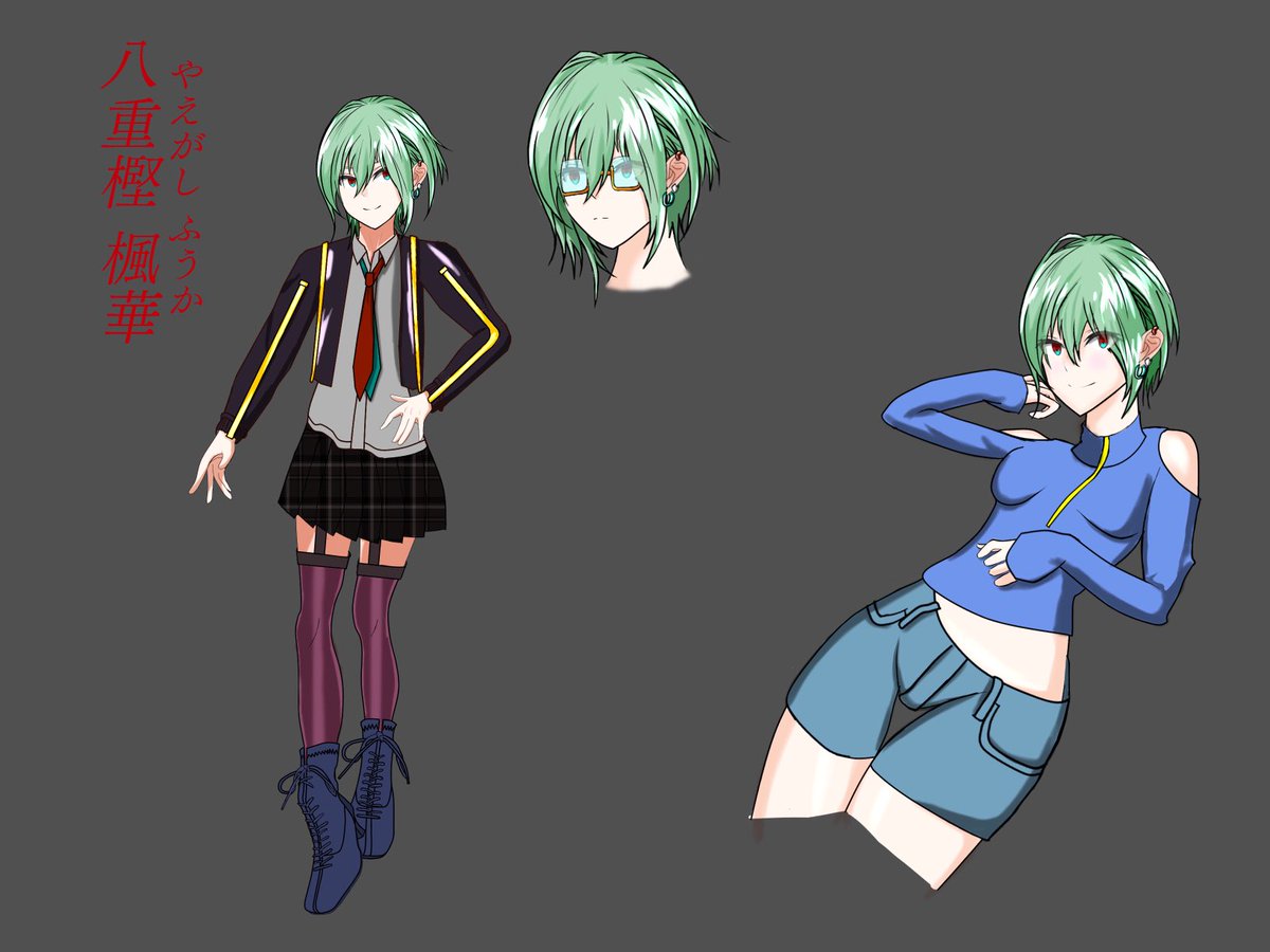 #イラスト好きな人と繋がりたい 恋愛の準ヒロイン的なオリキャラ「八重樫 楓華」を描きました_(┐「ε:)_ (設定画ホンマにツライ) ファンアートお待ちしております…_(:3」z)_ショリィン (メガネ差分、ポーズ差分ありやす)