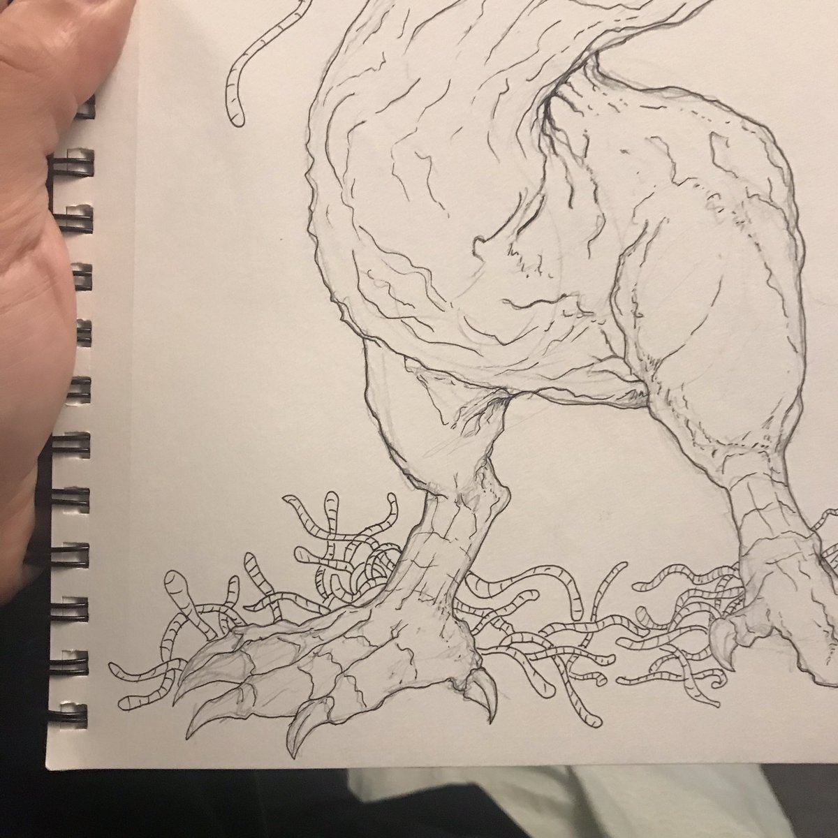 Day 13 Chicken Lord and the worms #Inktober2020 #inktober @ThereBeDungeons @BeauSchwartz @_KristenAshton_ @KyleFergusson @Jon_Jagger @scottjohnson #TWBD #therebedungeons #therewillbedungeons #sketch #sketchbook #dnd #dungeonsanddragons