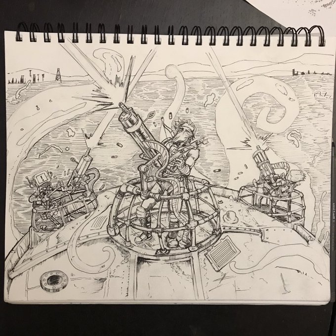 Day 27 Gatling gun on top of the dune breaker fighting the red jello. I feel like I can keep working on this. fallen in love with ball point pens again and thank inktober for opening my eyes to new media techniques #Inktober2020 #inktober #ballpointpenart #sketchbook #dnd