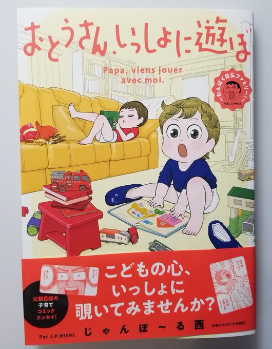 見本の本が届きました。 ゲラで何度もチェックしてましたが本の形になるとブックデザインに意外な驚きがありました。 中の印刷もすごくいいです(さすが日本!)。 10/8発売 『おとうさん、いっしょに遊ぼ ~わんぱく日仏ファミリー!~』 各オンライン書店にて予約受付中 hanmoto.com/bd/isbn/978439…