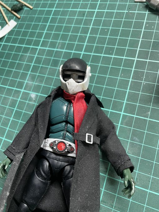 仮面ライダーの変形前のヘルメットも、スクラッチしちゃいました☺️ #シン・仮面ライダー