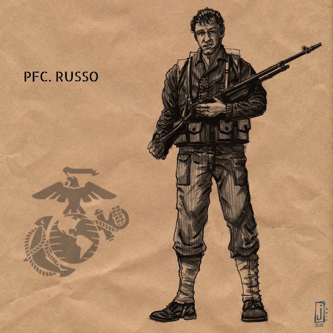 NO.7⚫️FIRETEAM 3⚫️ B.A.R. Gunner & Rifleman #Inktober #ww2 #inktoberday7 #marines #jscottink #MondayMorning