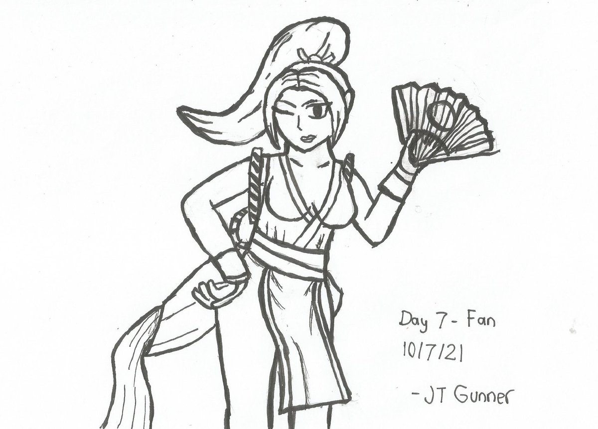 #Inktober Day 7: #Fan. I drew #MaiShiranui from #KingofFighters and #FatalFury. Because she wields fans. That's the thing she's most known for, right? Nothing else? ( ͡° ͜ʖ ͡°) Also, yeah, I fucked up drawing the fan. But what don't I fuck up? #Inktober2021 #fanart #myart