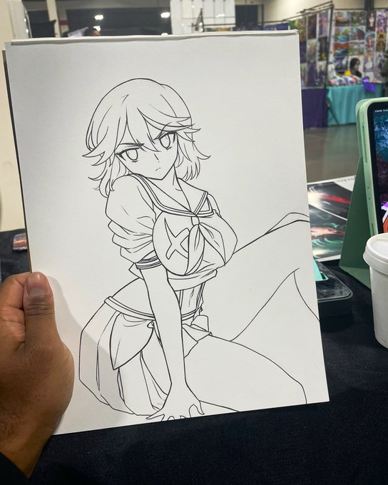 Here’s the first line work for day 1 at Comic-Con! Livestream coming later today! #anime #manga #lineart #characterdesign #mangaart #artist #art #fanart #drawing #animeart #animedrawing #onepiece #animeart #ryukokilllakill #killlakill #copicmarkers