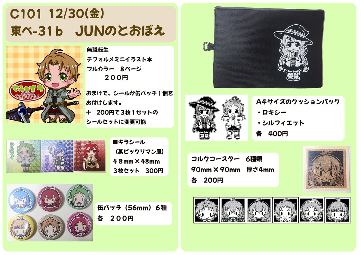 冬コミは無職転生で申し込みましたー。 デフォルメキャラがワチャワチャした作品を造ろうと 思っとります。 受かるといいなー。 #C101 #無職転生