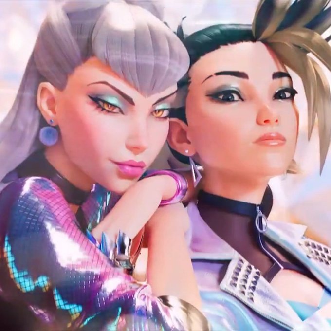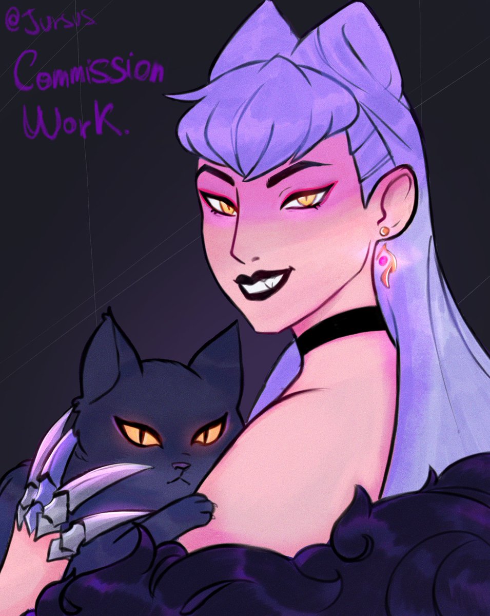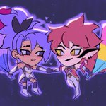 Lil thing i doodled between commissions for their anniversary ❤🩵 1 year 🥰🥰 #akali #evelynn #akalynn